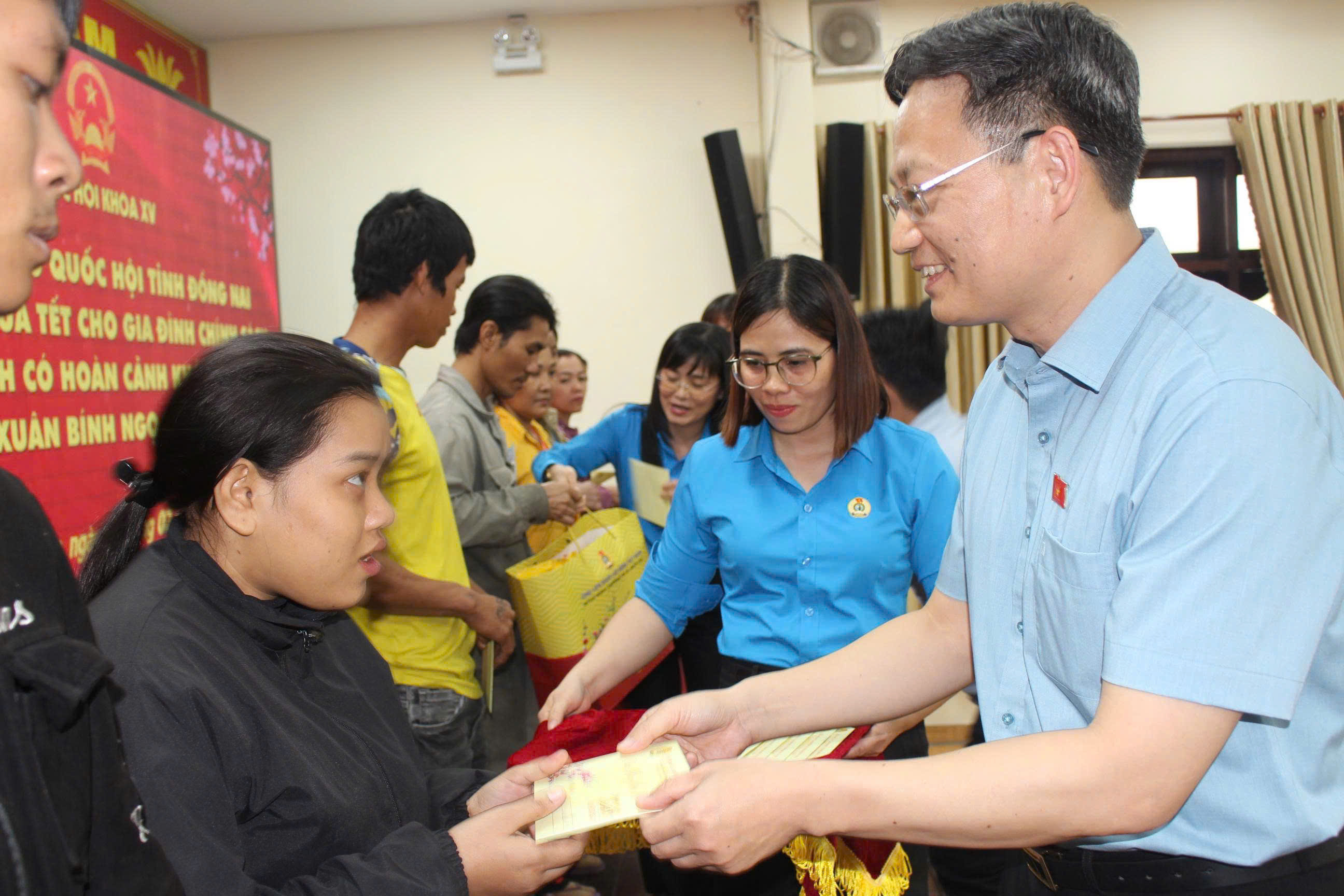 Nhân dịp Tết Nguyên đán Bính Ngọ 2026, chiều 01/02/2026, Đoàn đại biểu Quốc hội tỉnh Đồng Nai phối hợp Liên đoàn Lao động tỉnh tổ chức tặng quà cho công nhân lao động có hoàn cảnh khó khăn trên địa bàn xã Trảng Bom, tỉnh Đồng Nai.